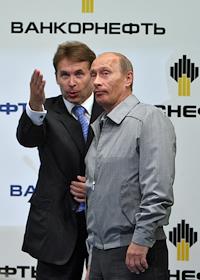 Председатель правительства России Владимир Путин (слева) и президент ОАО "Роснефть" Сергей…