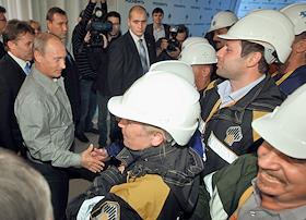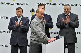 Политика Рабочая поездка председателя правительства России Владимира Путина в Игарку. Торжественная церемония запуска в промышленную эксплуатацию Ванкорского месторождения.