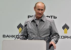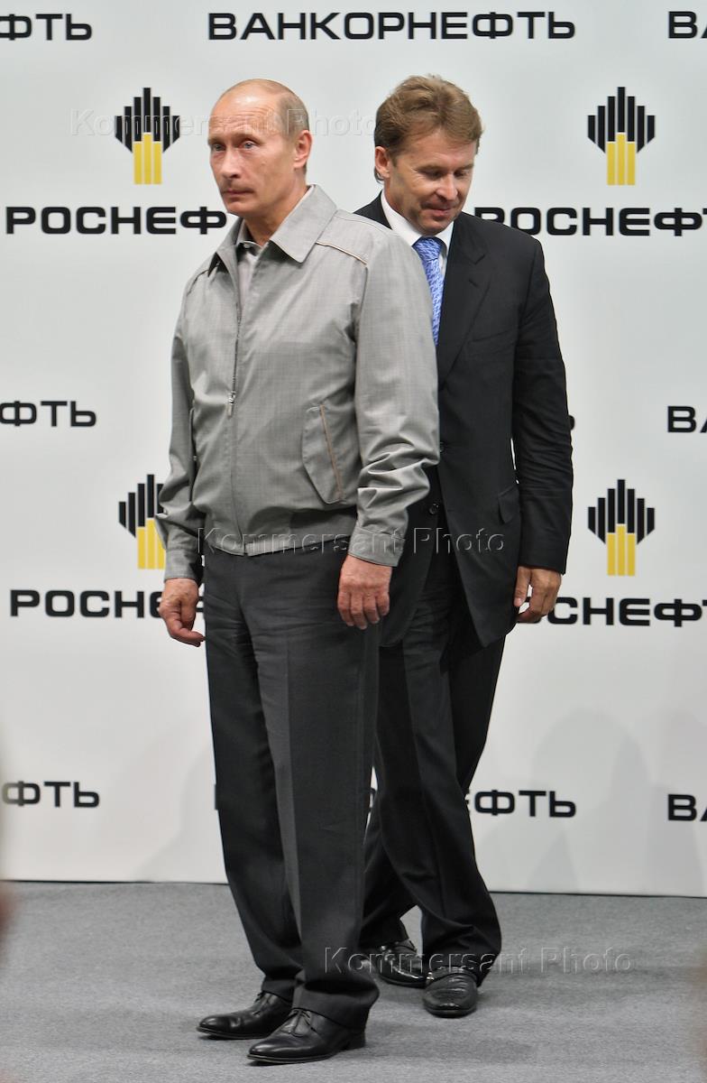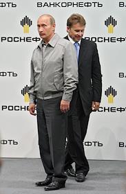 Председатель правительства России Владимир Путин (слева) и президент ОАО "Роснефть" Сергей…