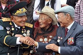 Монгольские ветераны участники сражения на Халхин-Голе во время мероприятий, приуроченных к 70-летию…