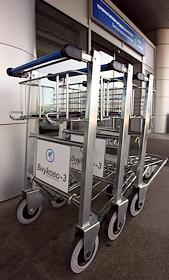 Центр бизнес-авиации "Внуково-3". Багажные тележки у входа в здание терминала международных…