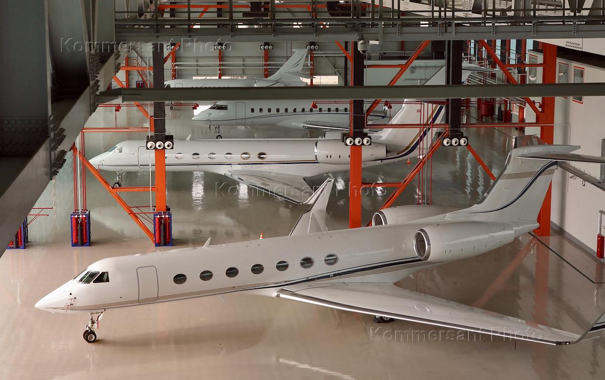 Центр деловой авиации аэропорта "Шереметьево". Самолеты в ангаре.