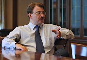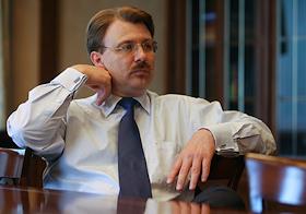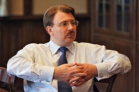 Заместитель генерального директора Российского авторского общества Олег Патрин во время интервью.