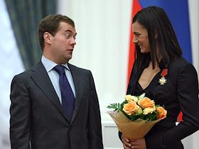 Президент России Дмитрий Медведев (слева) и олимпийская чемпионка по художественной гимнастике Анна…