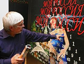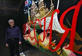Художник Ростислав Лебедев на церемонии открытия своей выставки "Заветные сказки" в галерее…