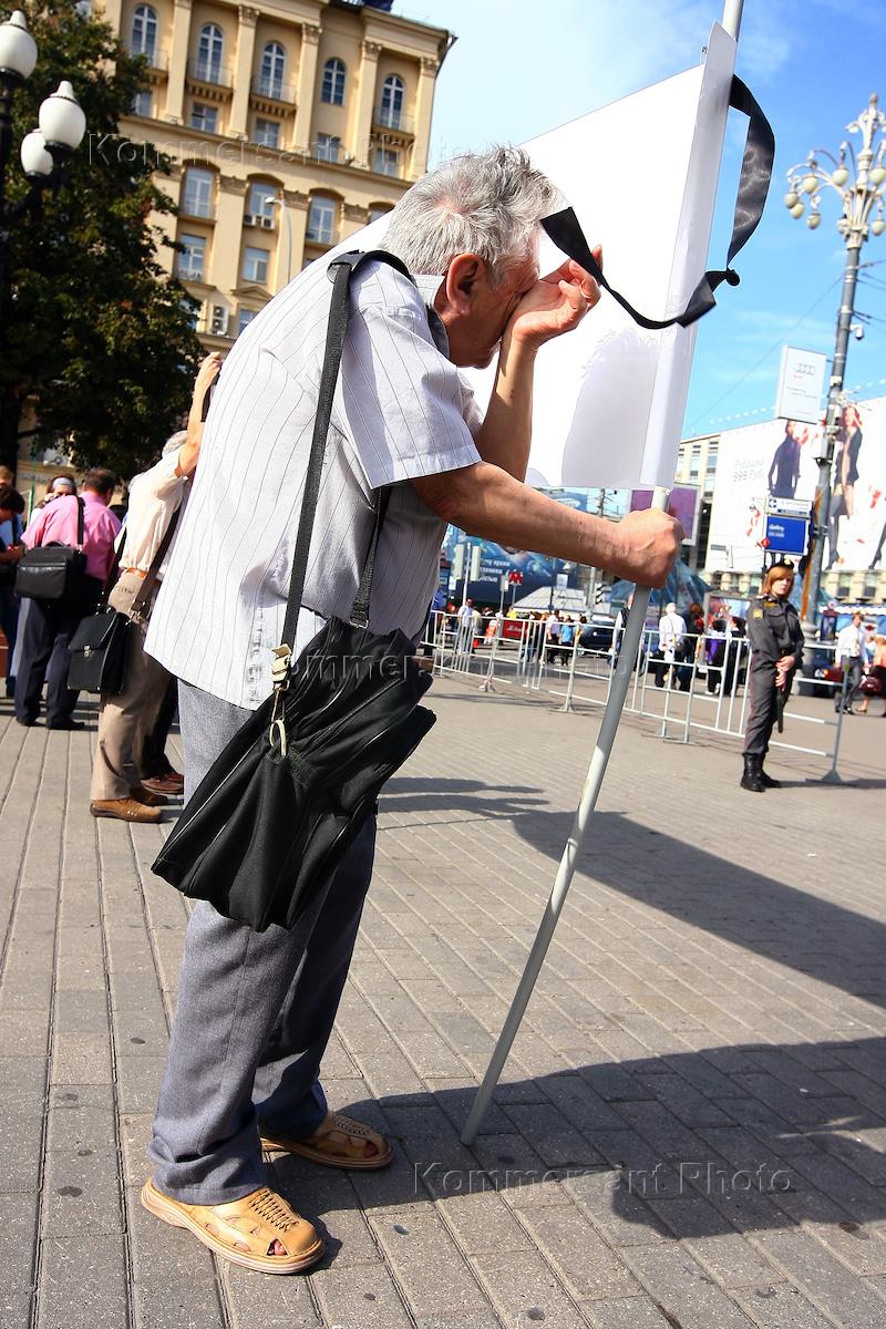 Пикет, посвященный 10-летию взрывов домов в Буйнакске, Москве, Волгодонске, организованный правозащитниками, в Новопушкинском сквере.