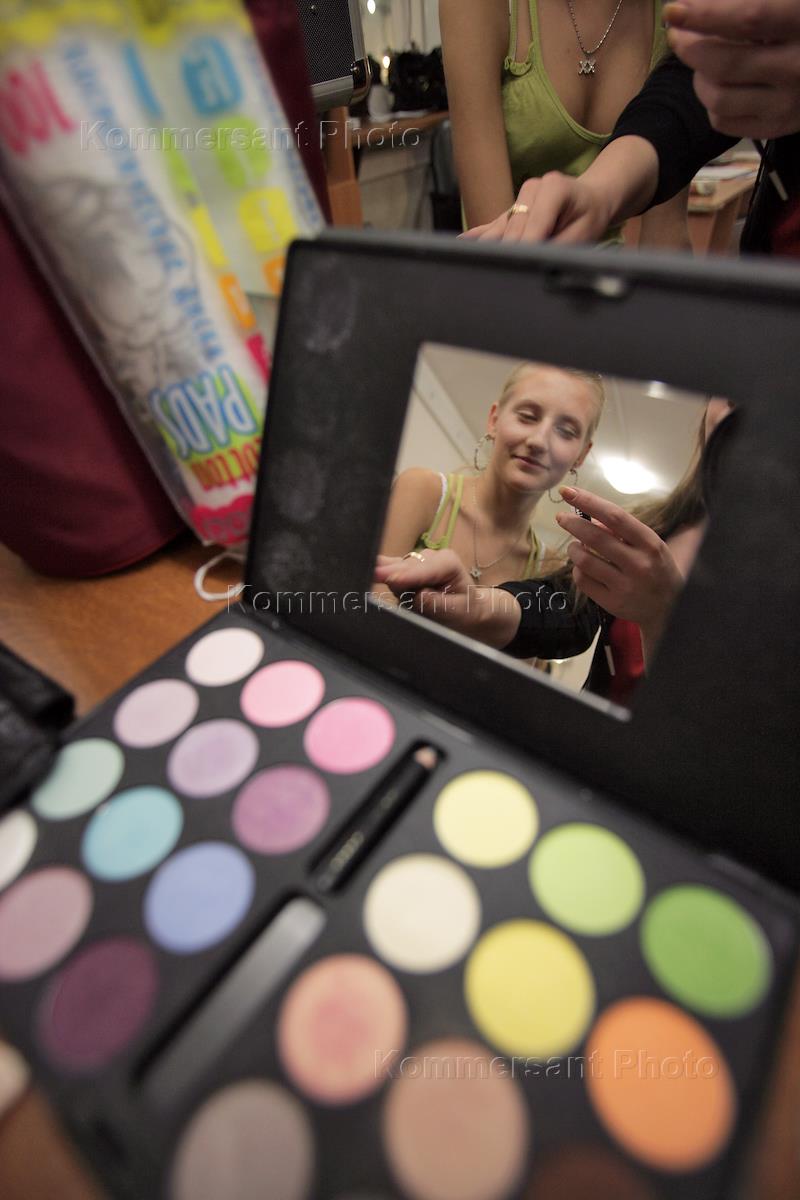 Девушки на обучающих курсах визажа в учебном центре "Академия Красоты".