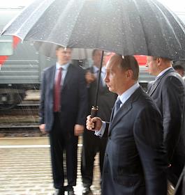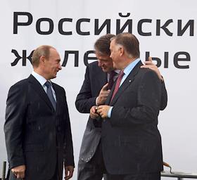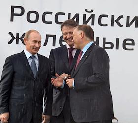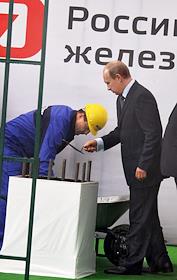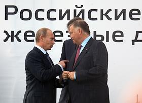 Председатель правительства России Владимир Путин и президент ОАО "Российские железные дороги" (РЖД)…