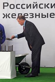 Президент ОАО "Российские железные дороги" (РЖД) Владимир Якунин на церемонии закладки памятной…