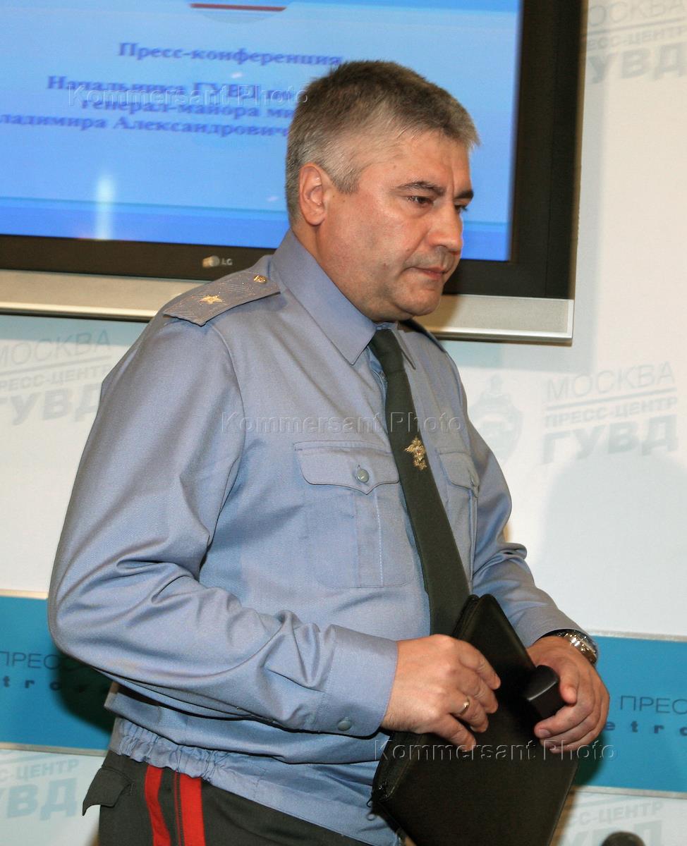 Начальник ГУВД Москвы, генерал-майор Владимир Колокольцев во время пресс-конференции в…