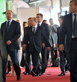 Председатель правительства России Владимир Путин (в центре) и представитель губернатора Омской…