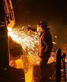 ОАО "Мотовилихинские заводы". Металлургическое производство. Сталевар за работой.