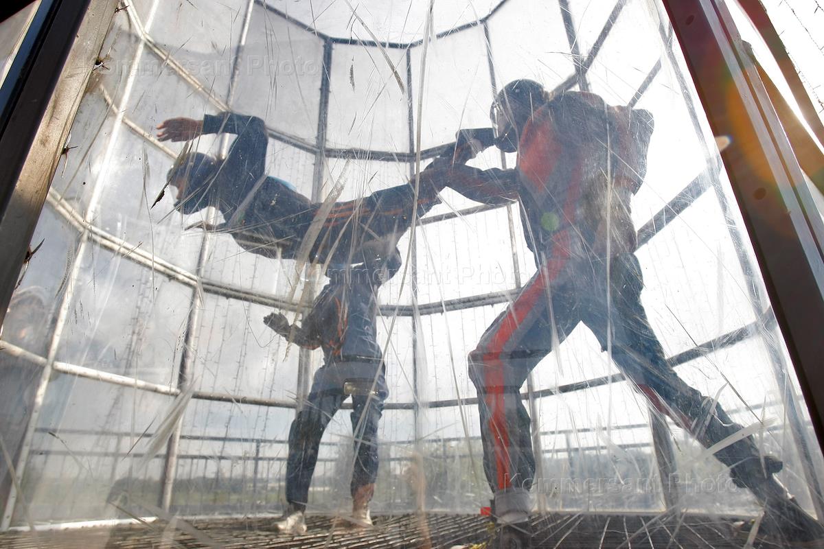 Полеты в аэродинамической трубе "Аэропоток" на стадионе Технических видов спорта.