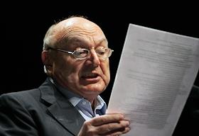 Писатель-сатирик Михаил Жванецкий во время своего творческого вечера на сцене Концертного зала…