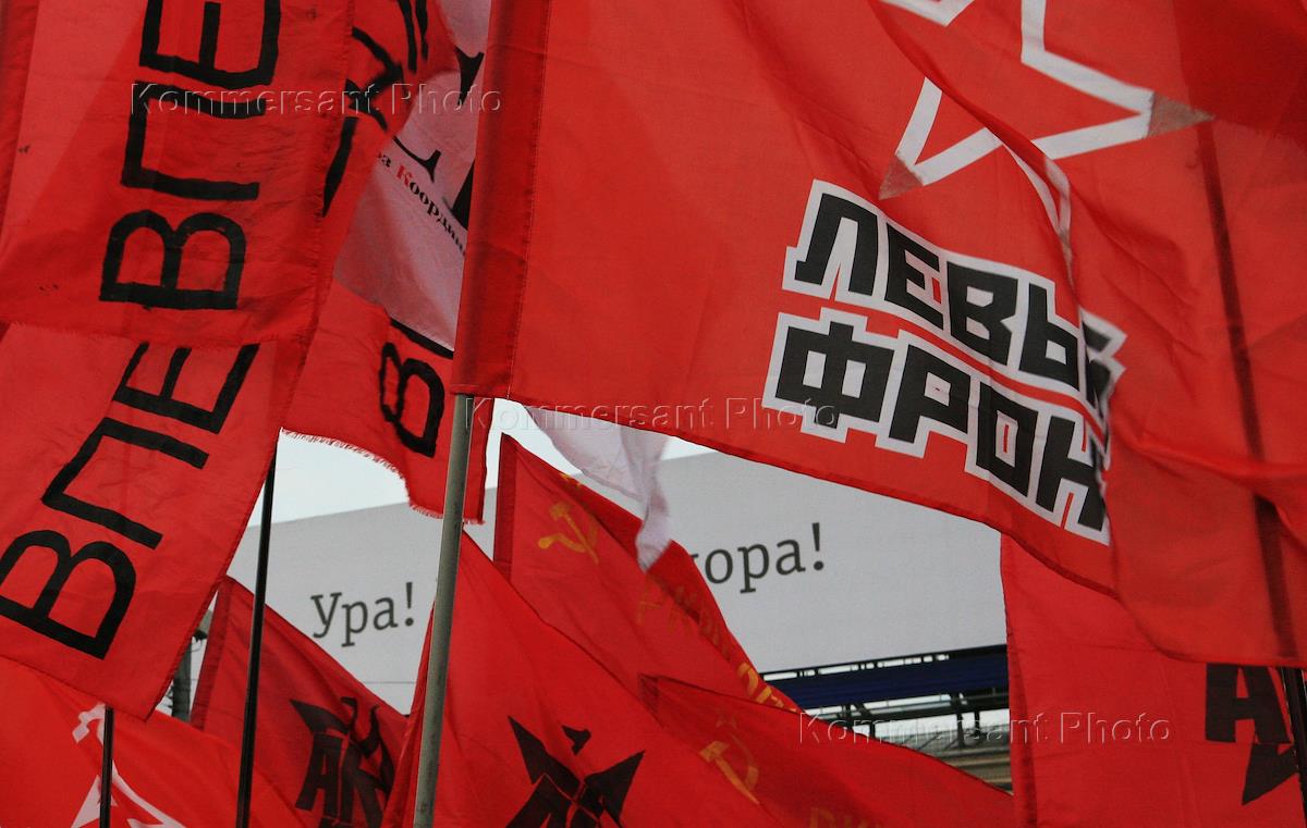 Митинг на Триумфальной площади. Флаги движения Левый фронт.