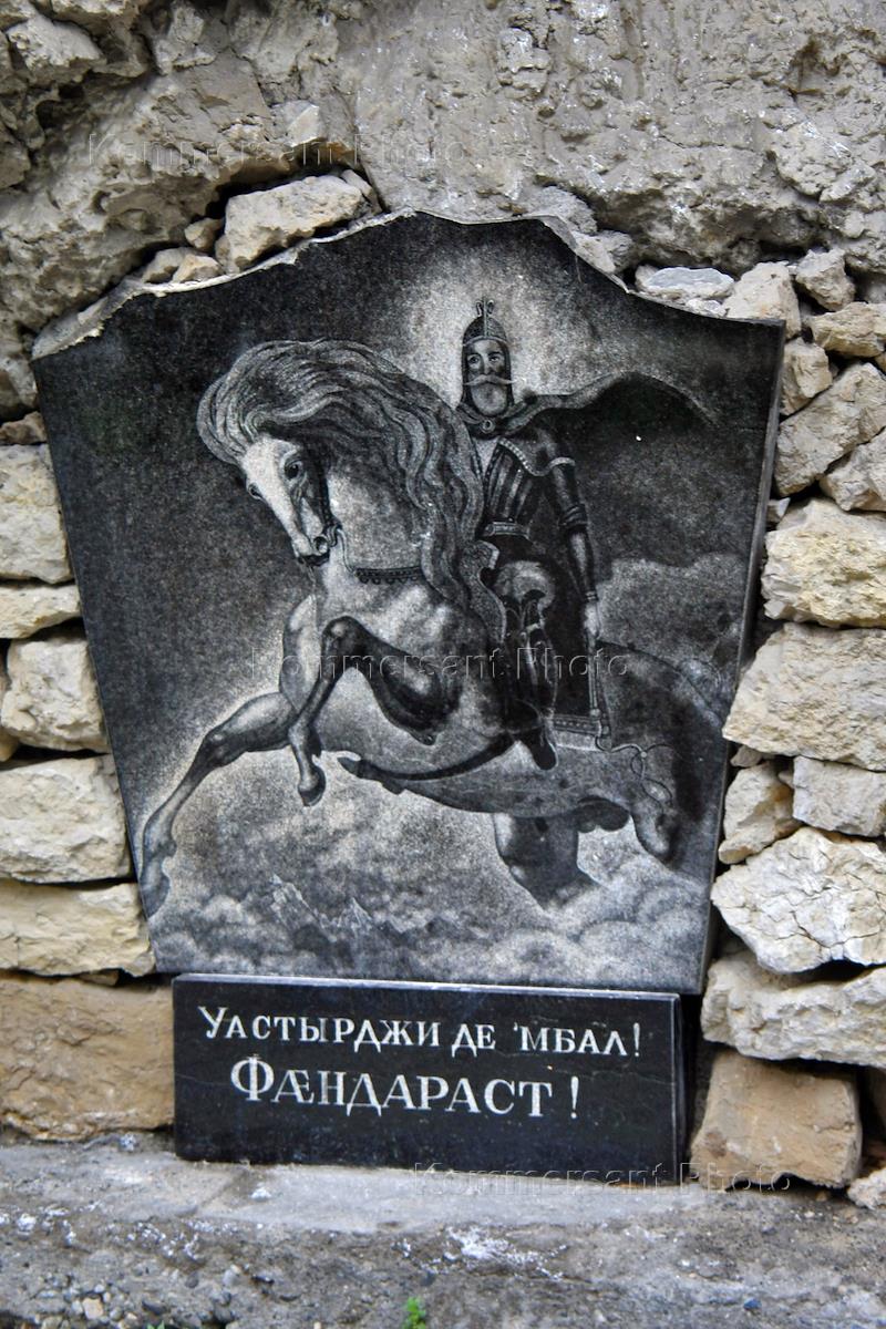 Памятник покровителю воинов и путников-мужчин Устырджи с надписью "Фандараст!", что на осетинском…
