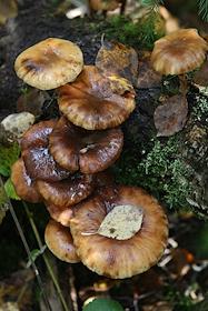 Жанровая фотография. Грибы опята на пне.