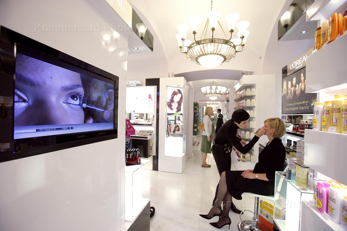 Работа визажиста компании L'Oreal Paris в Главном универсальном магазине (ГУМ).
