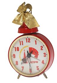 Будильник с логотипом Коммунистической партии России (КПРФ) и надписью "На пути к новому времени!"…