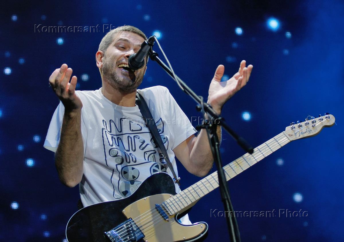 Лидер группы "Сплин" Александр Васильев во время выступления группы на концерте в спорткомплексе…
