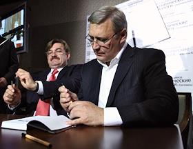 Журналист Евгений Киселев (слева) и лидер движения "Народно-демократический союз" (НДС) Михаил…