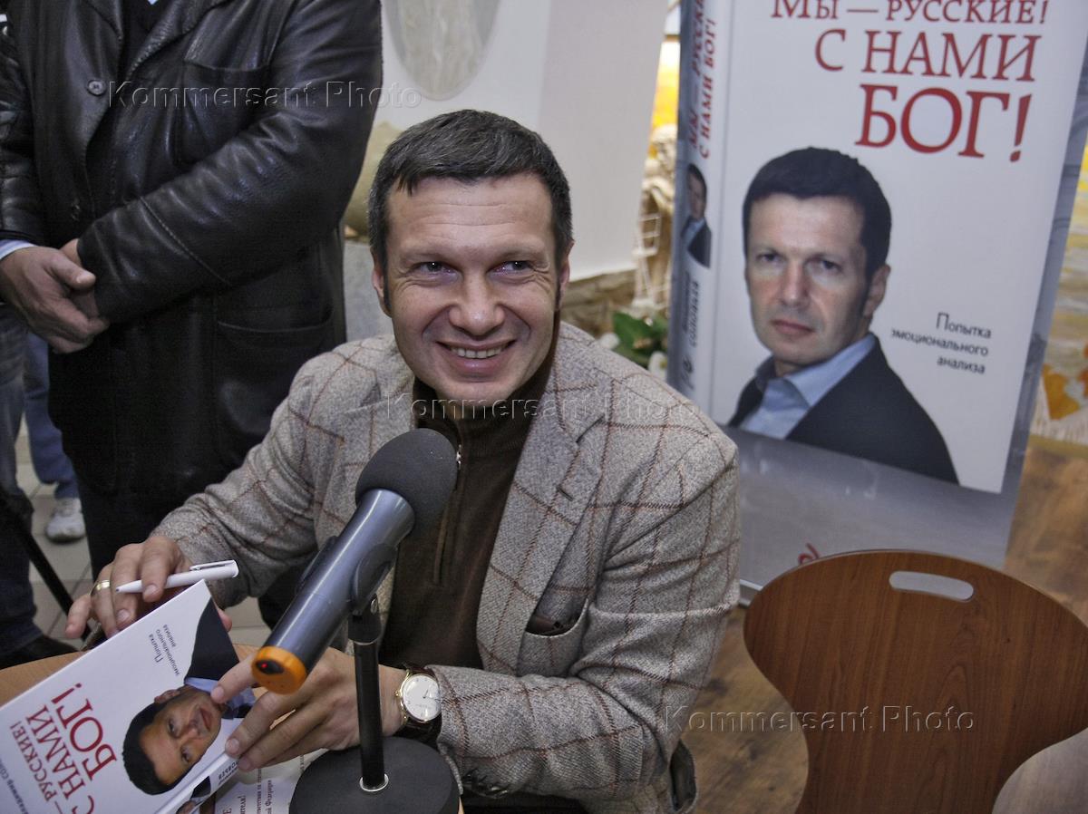 Радиоведущие Владимир Соловьев на презентации своей книги "Мы - русские! С нами Бог!" в Торговом…