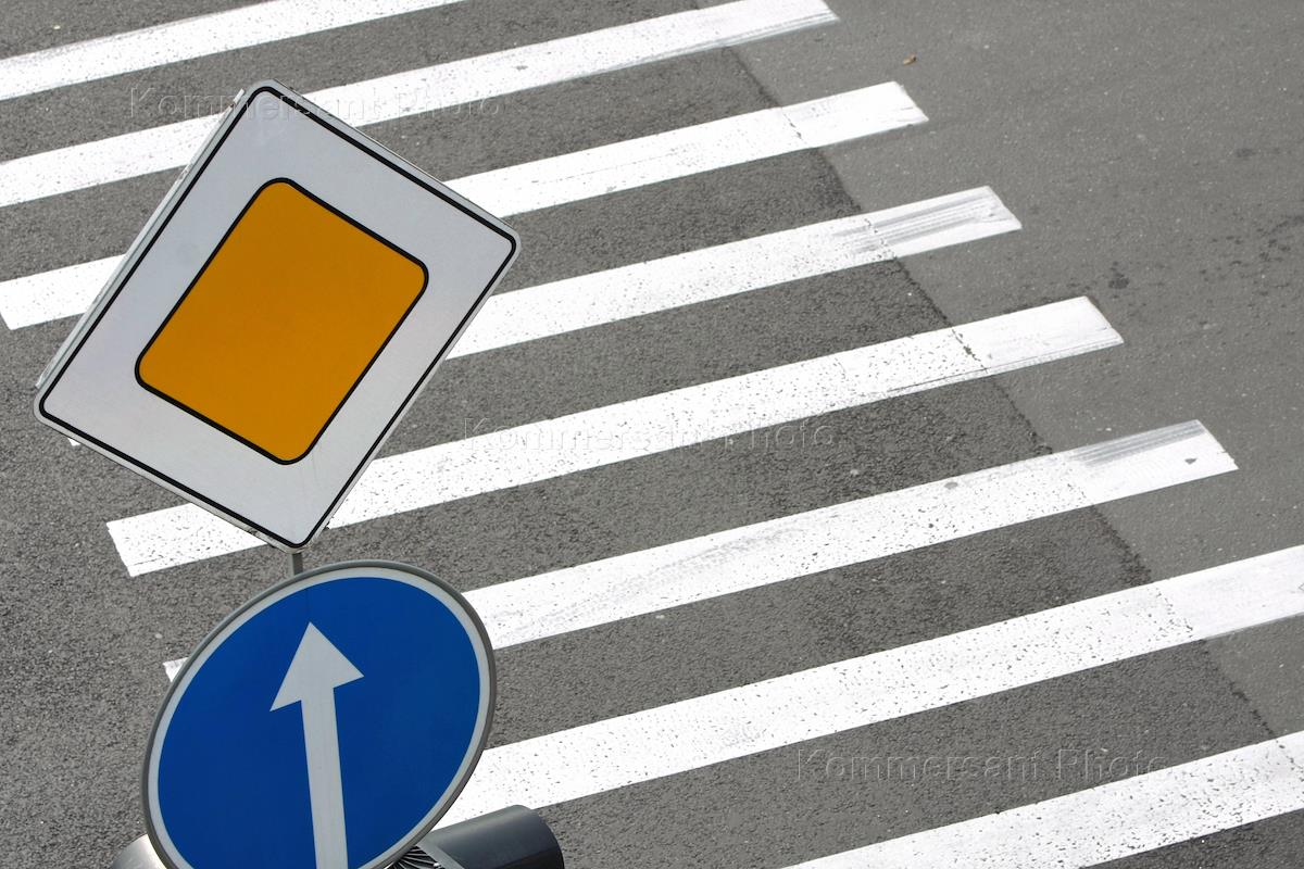 Жанровая фотография. Пешеходный переход. Дорожные знаки "Главная дорога" и "Движение прямо".