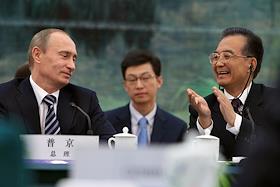 Председатель правительства России Владимир Путин (слева) и премьер Госсовета КНР Вэнь Цзябао…