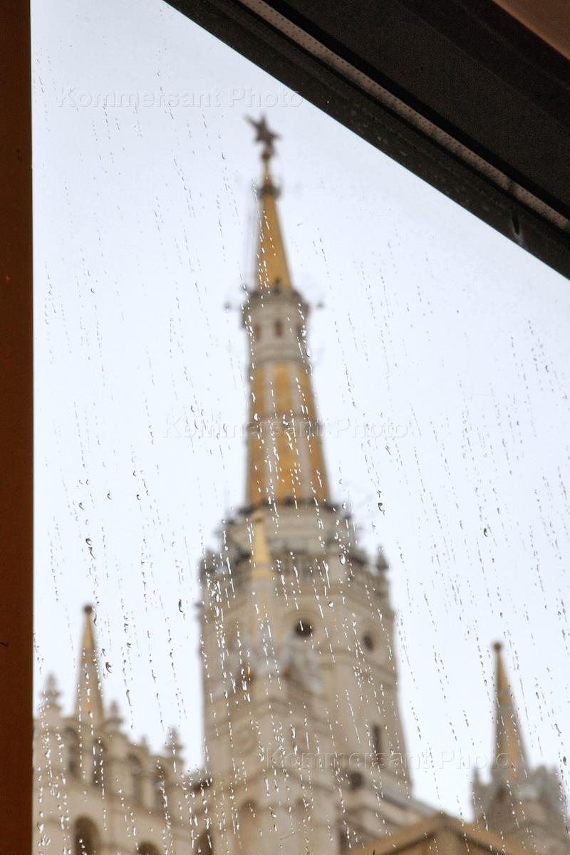 Виды Москвы. Шпиль жилого высотного здания на Кудринской площади.