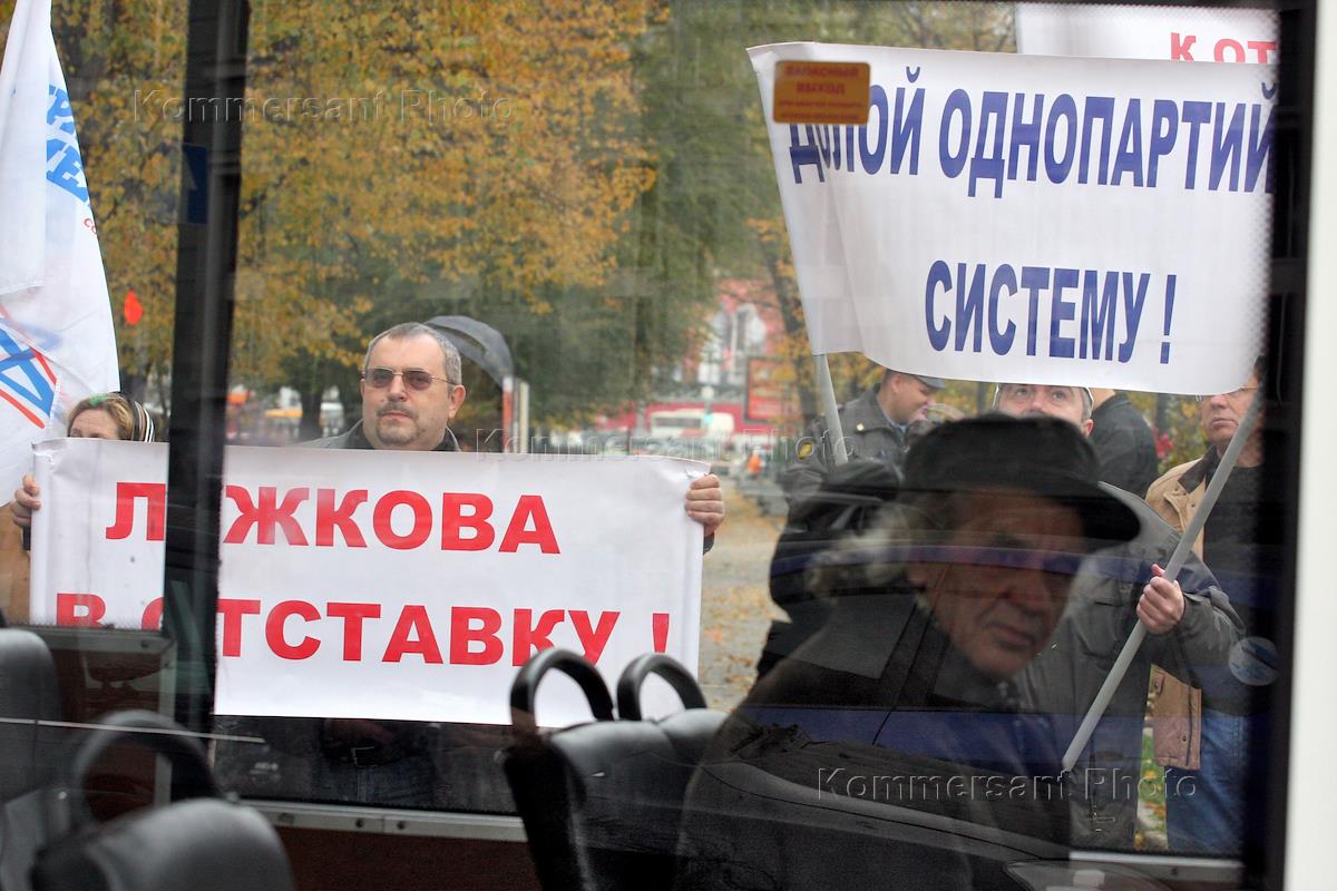 Политика Пикет несогласия с официальными результатами выборов депутатов Мосгордумы, организованный активистами партии "Правое дело", у входа в московскую городскую Думу.