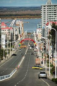 Виды города Фуюань. Вход в магазин "Евросеть". Вывеска магазина, написанная на русском языке.