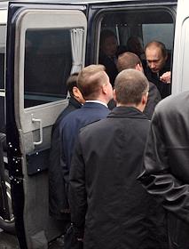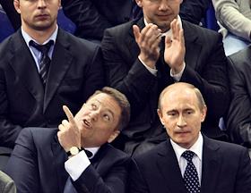 Слева направо: председатель правительства России Владимир Путин, заместитель председателя…