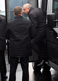 Председатель правительства России Владимир Путин (справа) перед церемонией открытия первой очереди…