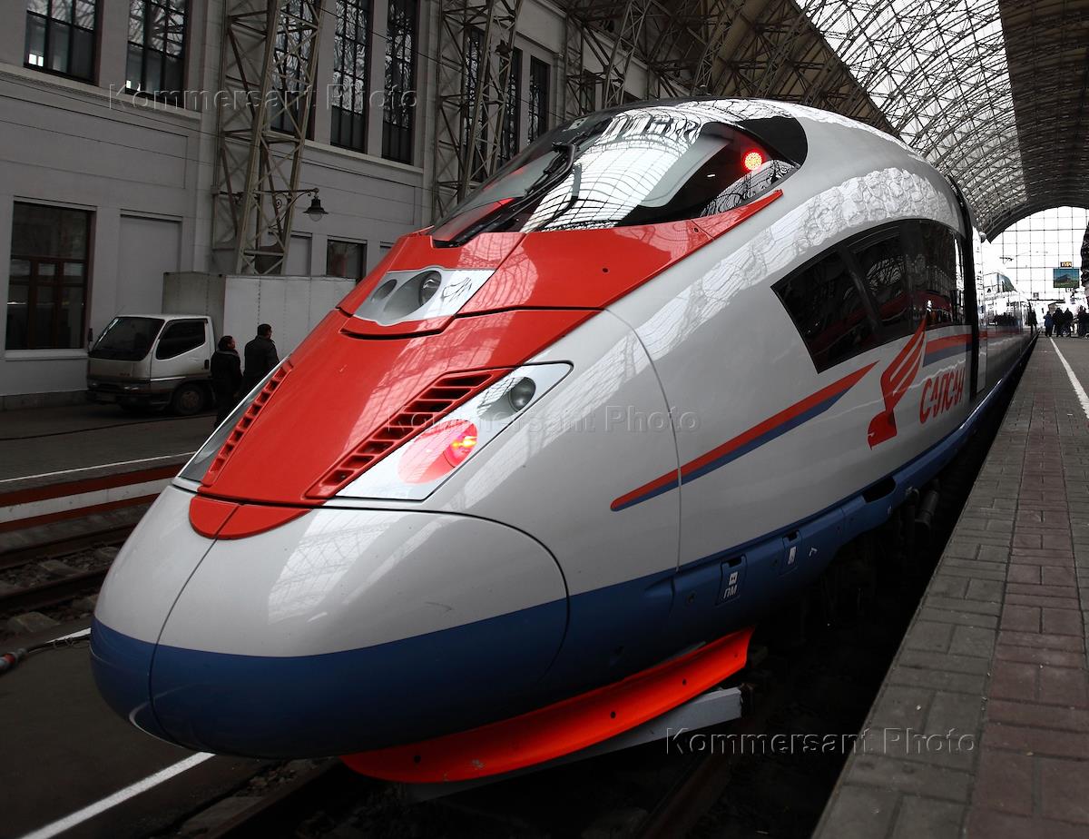 Скоростной поезд-экспресс "Сапсан" на Киевском вокзале.