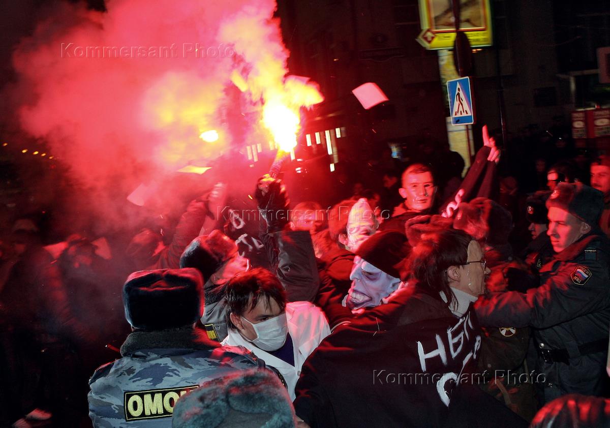 Участники "Митинга несогласных", организованного российскими оппозиционерами и правозащитниками в…