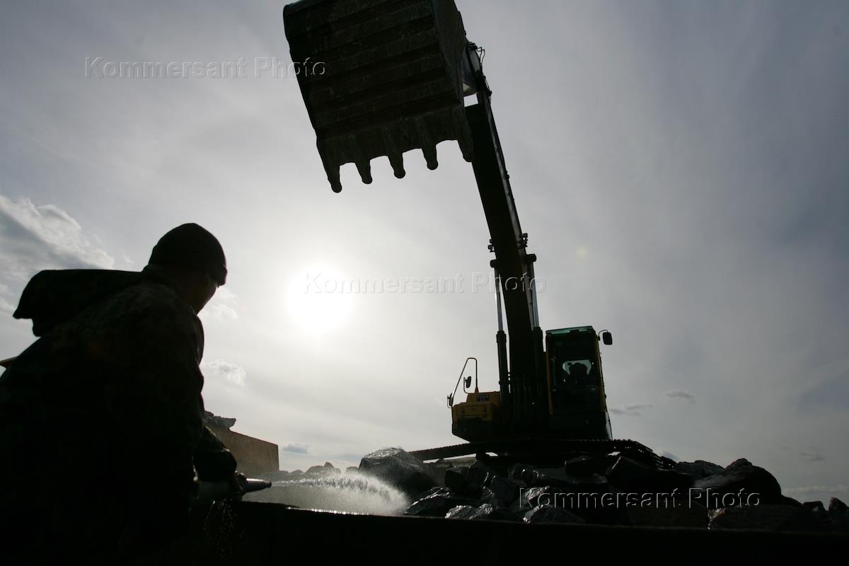 Жанровая фотография. Строительные работа на берегу реки Дунай.