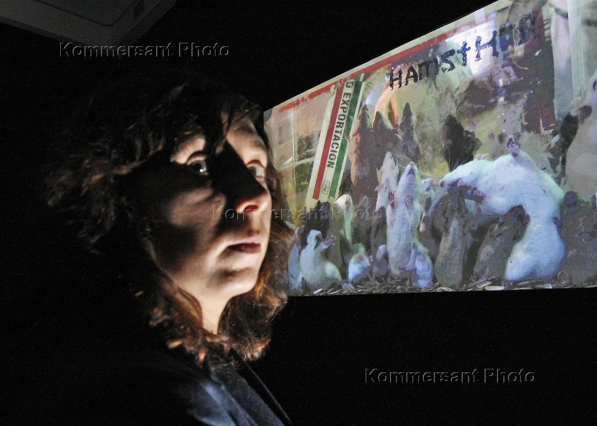 Художник Анна Ермолаева на церемонии открытия своей выставки "Крысы" в галерее XL Центра…