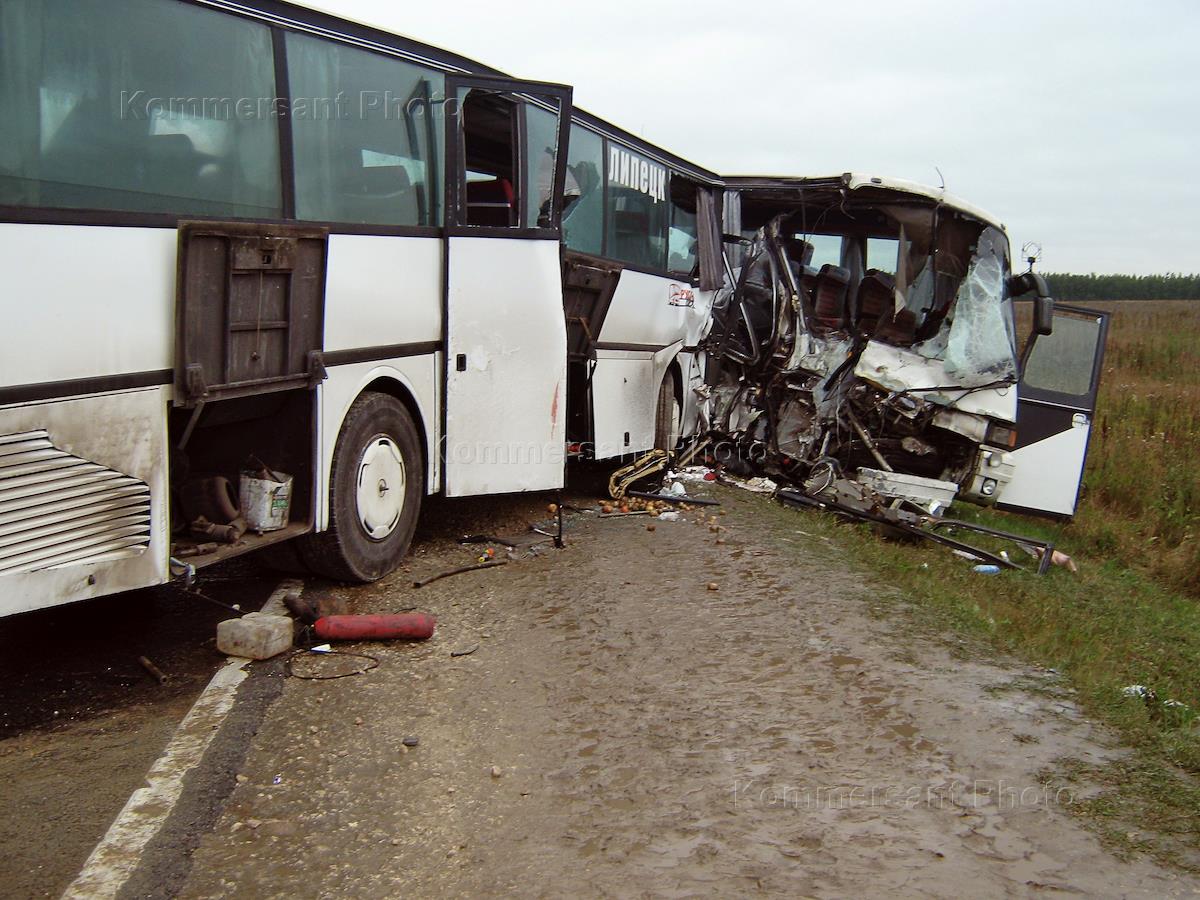 Последствия автомобильной аварии двух междугородних рейсовых автобусов, следовавших из Тамбова и…