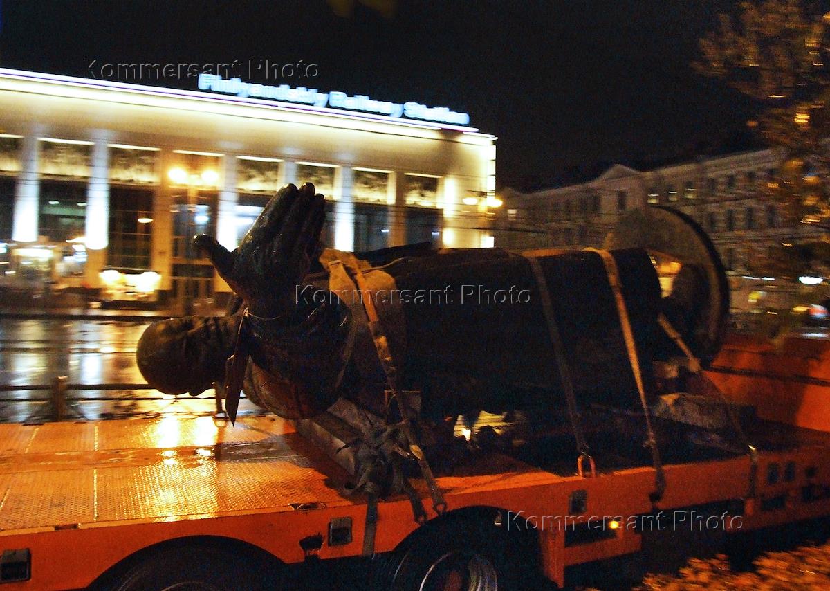Поврежденный памятник Владимиру Ленину увозят с площади перед Финляндским вокзалом на реставрацию.…