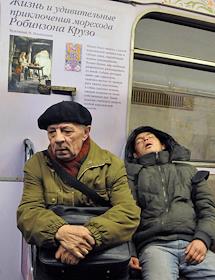 Жанровая фотография. Пассажиры в вагоне поезда метро.
