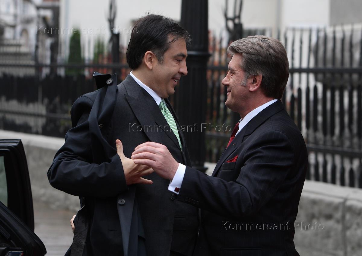 Президент Украины Виктор Ющенко (справа) и президент Грузии Михаил Саакашвили (слева) во время…
