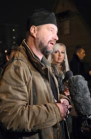 Священник отец Виталий Зубков (в центре) на месте убийства священника Даниила Сысоева рядом с храмом…