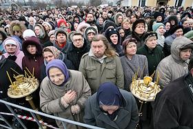 Прощание со священником Даниилом Сысоевым в храме святых апостолов Петра и Павла в Ясеневе.