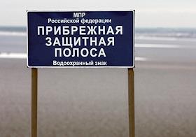Жанровая фотография. Водоохранный знак с надписью "Прибрежная защитная полоса".