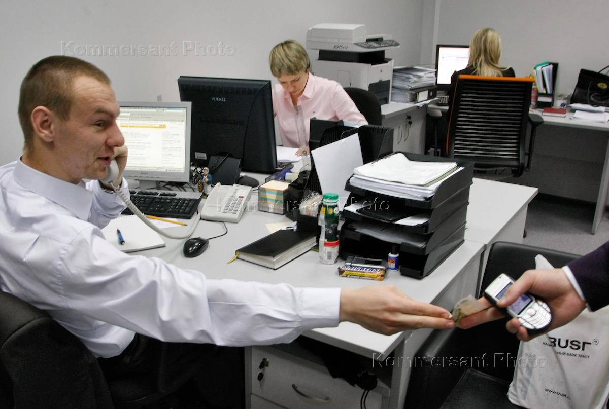 Сотрудники Национального банка "Траст" во время работы.