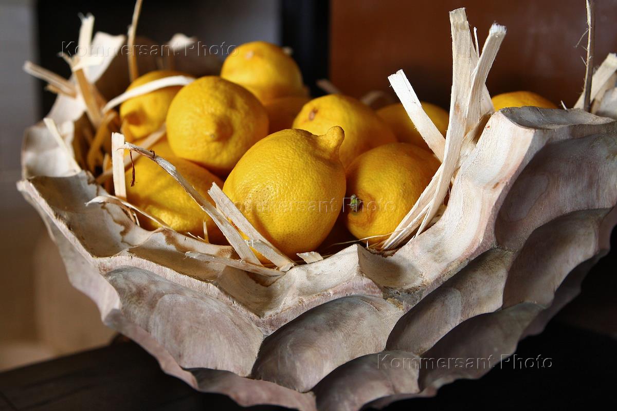 Интерьер ресторана "Облака". Корзина с лимонами.