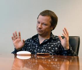 Генеральный директор компании "Мегалайнер Рекордз" Антон Гришин во время интервью.