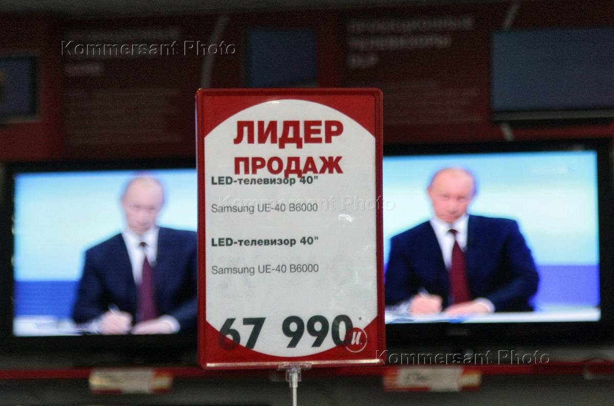 Фотосъемка в магазине "М-Видео" на Войковской с экранов телевизоров трансляции "прямой-линии" с…