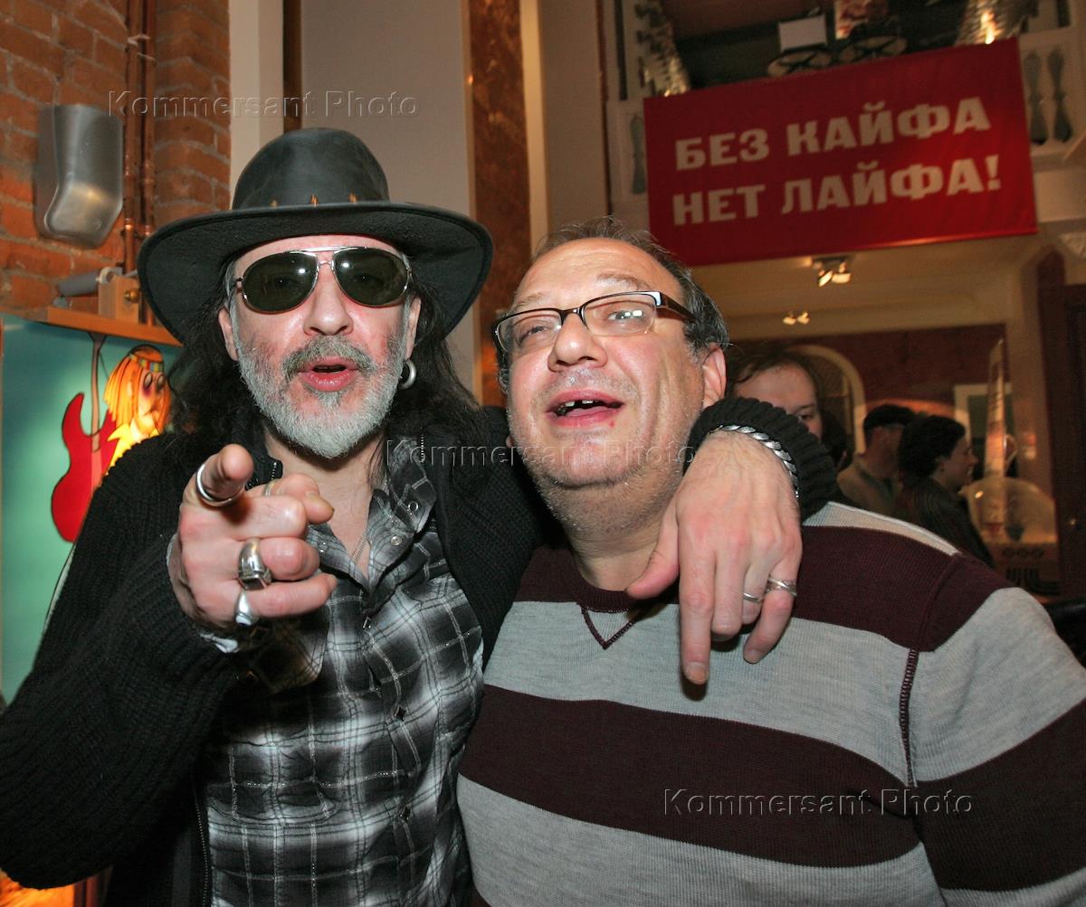 Лидер группы "Неприкасаемые" Гарик Сукачев (справа) на праздновании своего 50-летия в кинолектории…
