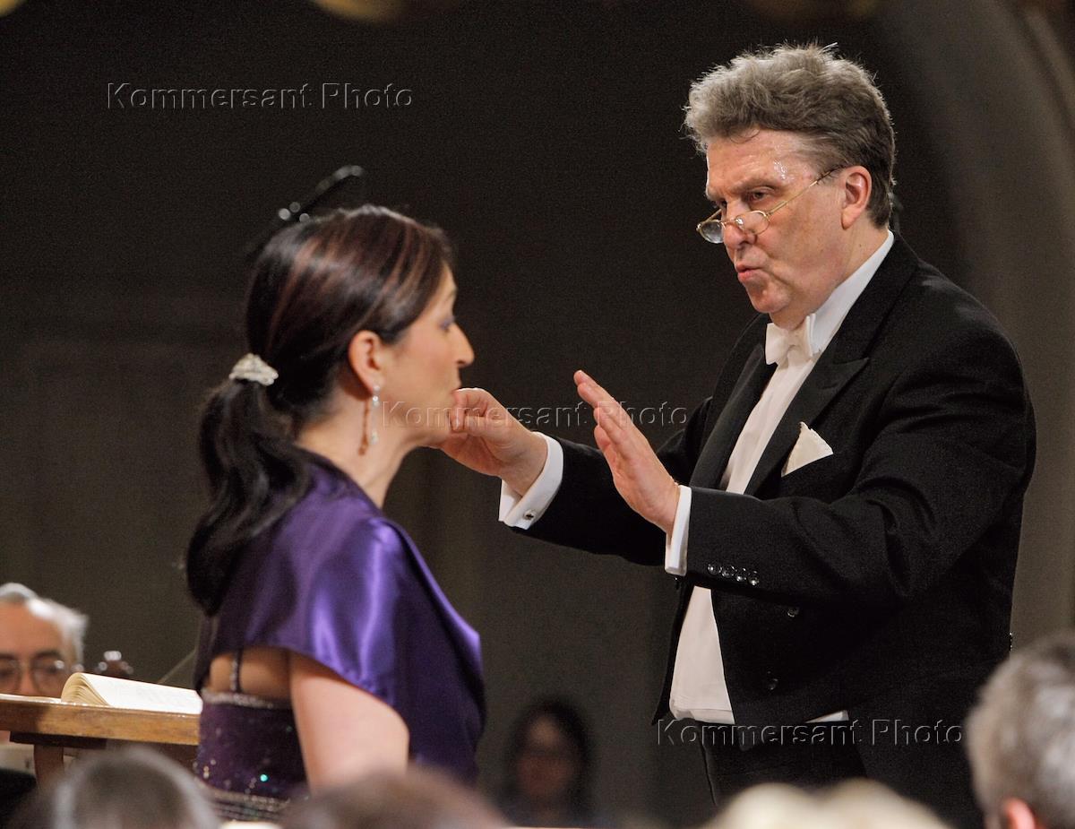 Шведская оперная певица Катарина Карнеус (меццо-сопрано) и дирижер Василий Синайский (справа) во…